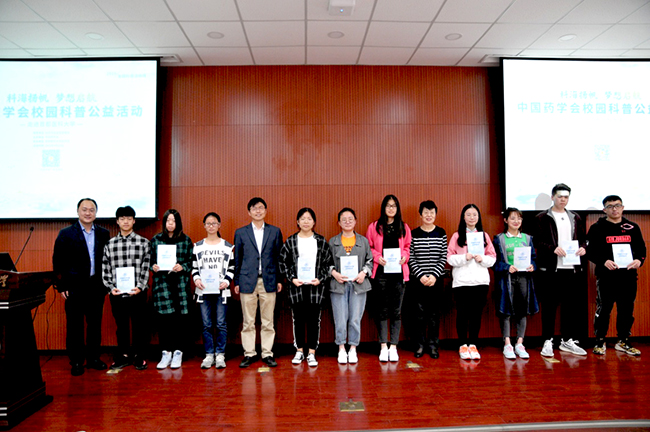 活动中,丁丽霞副理事长兼秘书长表示:中国药学会校园科普公益活动致力于为大学生提供一个科普交流平台,使同学们在成才的道路上,多了解社会、接触社会、服务社会。希望同学们积极投身药学科普志愿服务,为药学科普公益事业贡献力量。